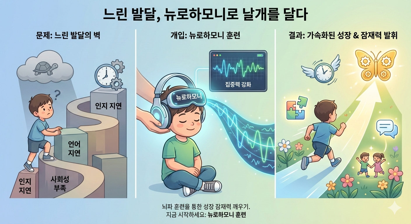 느린발달의 문제, 뉴로하모니 훈련으로 날개를 다세요.